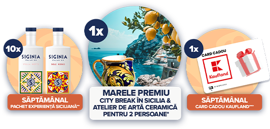 În perioada 15.05.2025 - 15.07.2025, cumpără minimum un produs Siginia Italian Gin participant din magazinele fizice din rețeaua Kaufland de pe teritoriul României, înscrie data și numărul bonului fiscal pe website-ul www.siginia-gin.com/Kaufland sau scanează codul QR și poți câștiga prin tragere la sorți unul dintre premiile campaniei.